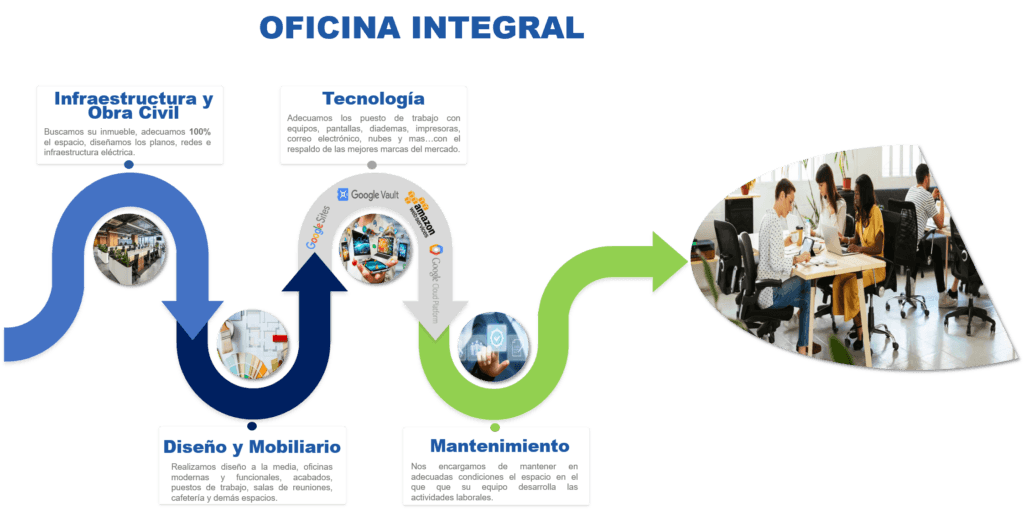 Este concepto de negocio nos permite hacer la vida de nuestros clientes más fácil, permitiendo encargarnos de diseñar, adecuar, dotar y mantener el espacio siempre en la mejores y mas optimas condiciones para su negocio.